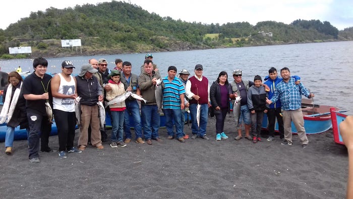 Una foto general del grupo de pescadores del sindicato de boteros de Pucón.