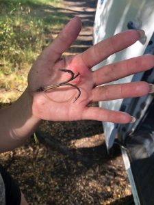 La imagen muestra el anzuelo que se clavó en la mano de una usuaria del rafting.