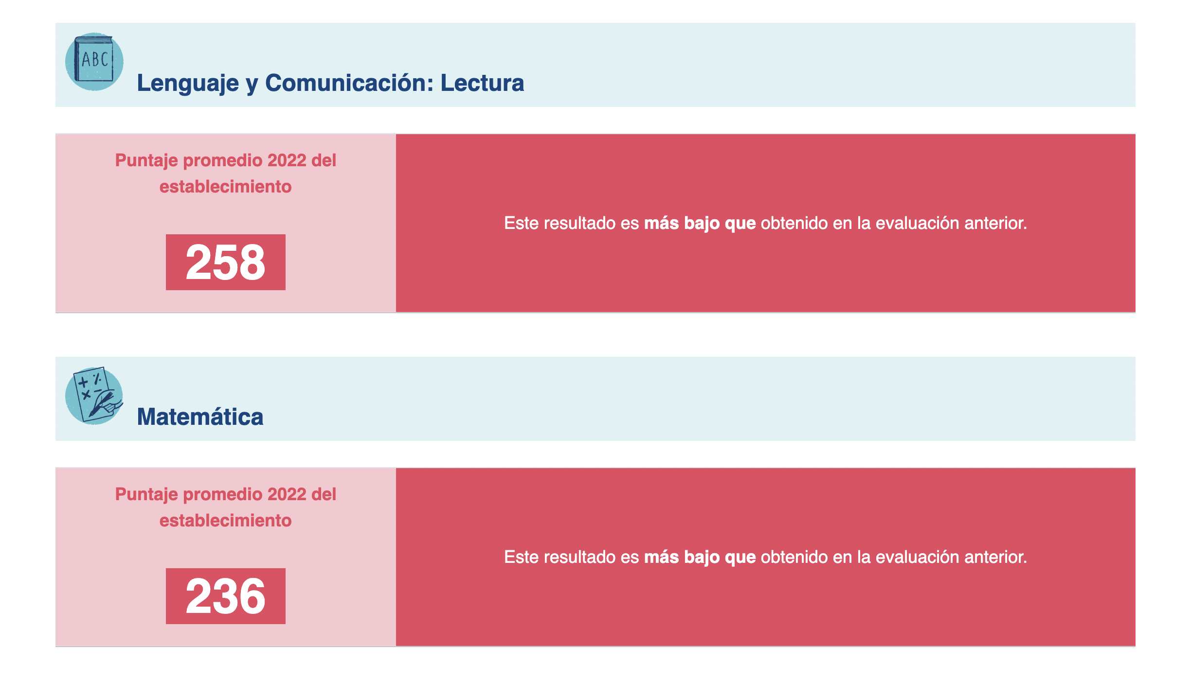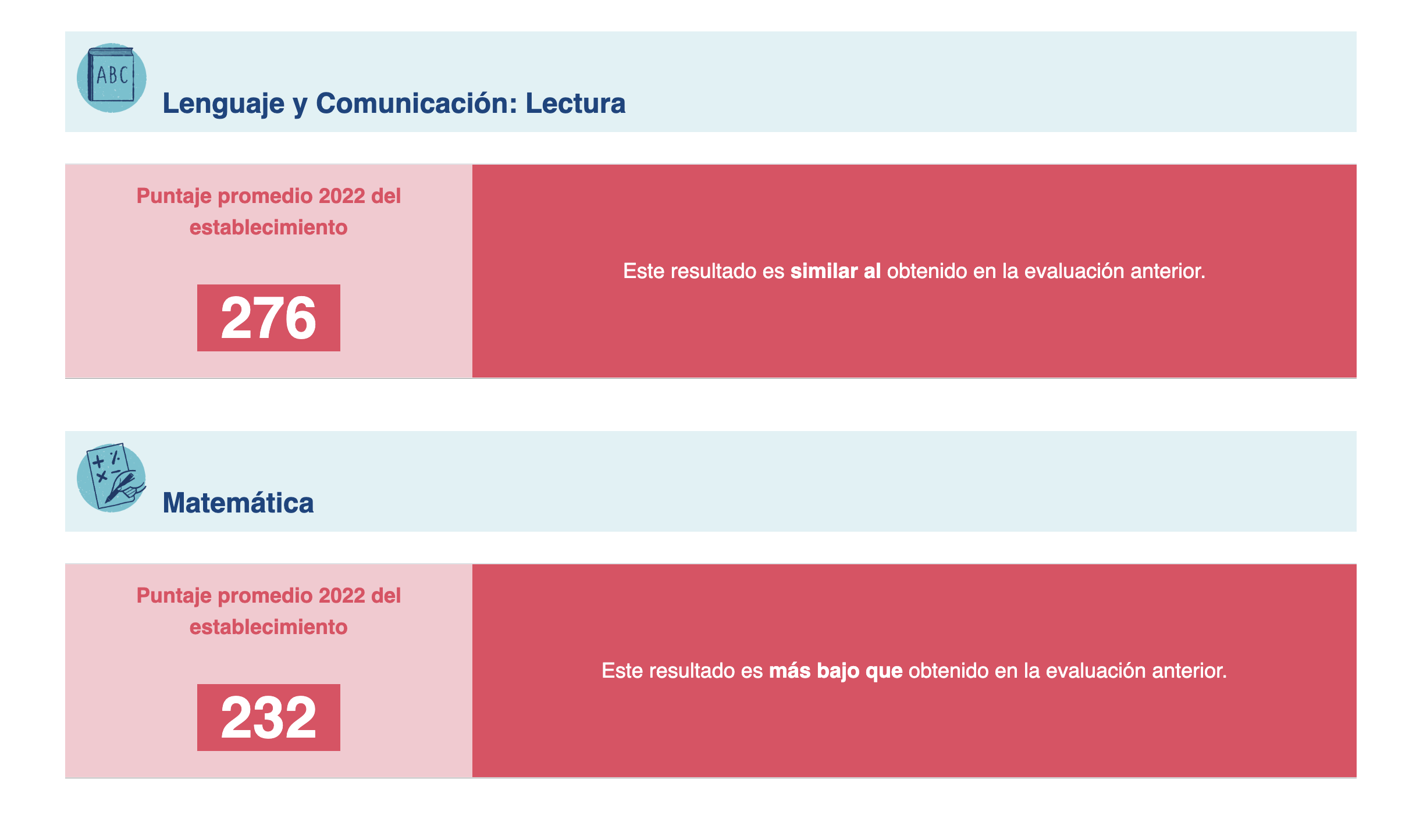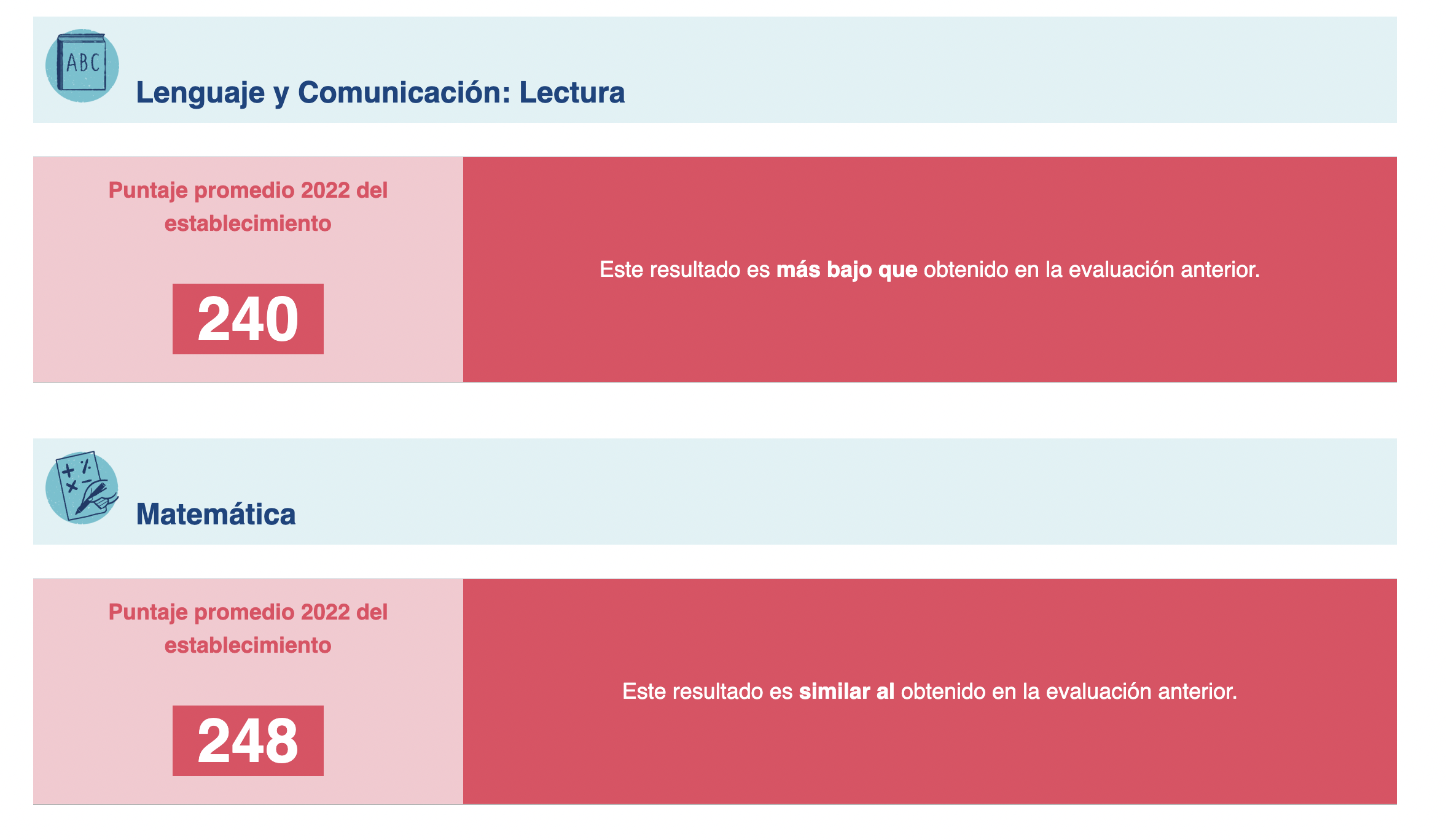 A continuación te dejamos los resultados oficiales de la última prueba Simce aplicada el año 2022 a los cuartos básicos y segundos medios de los colegios locales. Al principio te dejamos los resultados nacionales para que puedas comparar con el colegio de tu interés. Al final te dejaremos la simbología para leer los resultados.