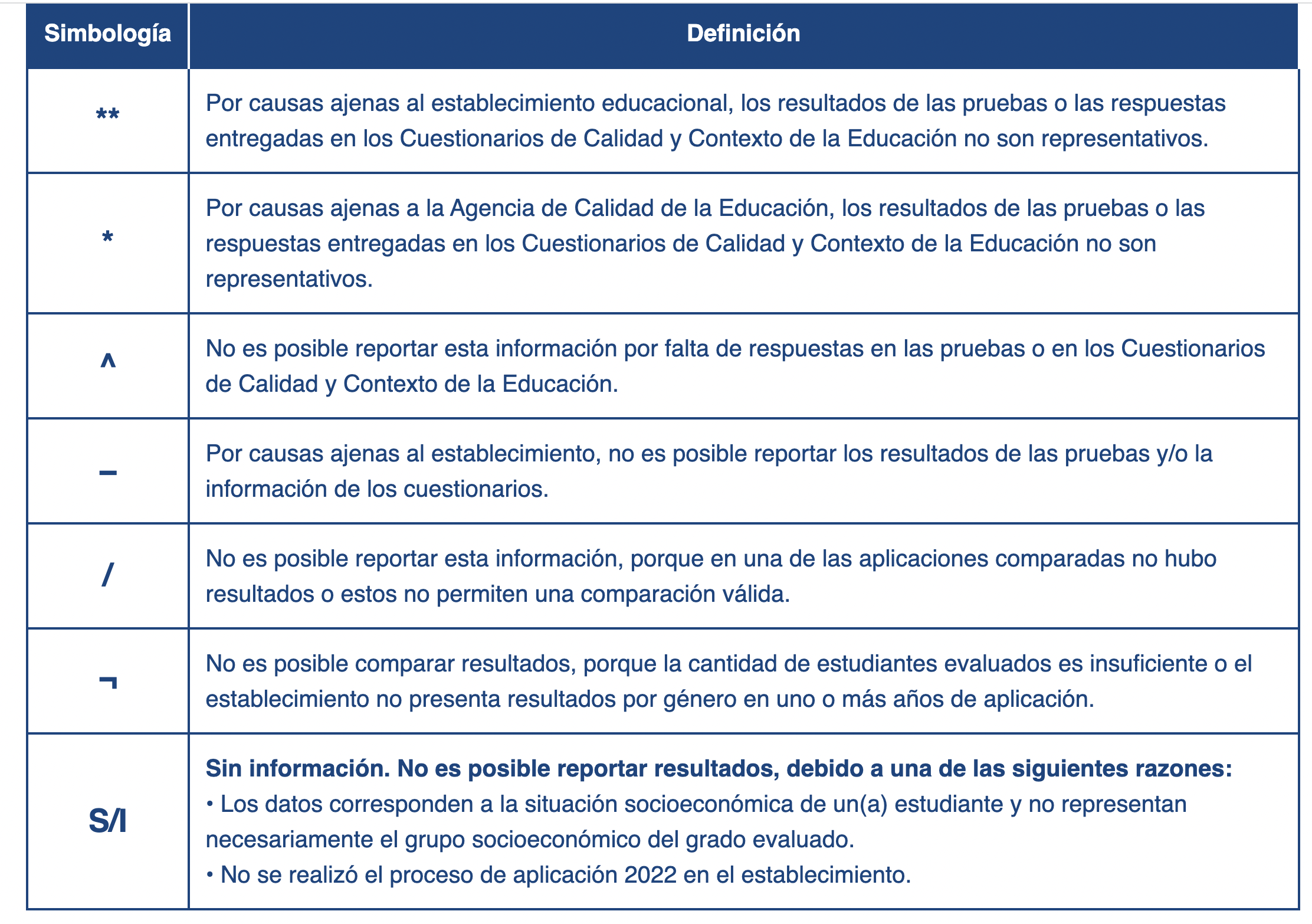 Te dejamos la base para entender los símbolos que explican algunos resultados.