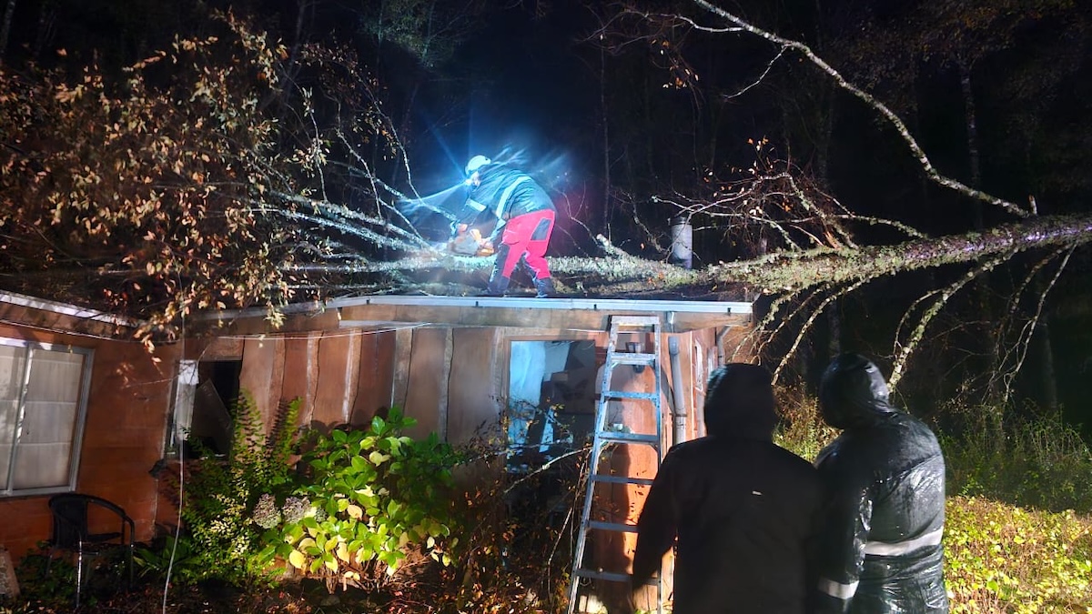 Fueron un poco más de 60 mm. de agua en unas pocas horas y las rachas de viento superaron, incluso, los 100 Km./hr. El temporal (o río atmosférico como le dicen los expertos) que se dejó caer durante la madrugada del sábado dejó algunos efectos complejos. Lo más relevante la caída de un árbol en el sector de Liucura que dejó con daños severos una casa y a dos personas damnificadas que fueron ubicadas en casas de parientes.