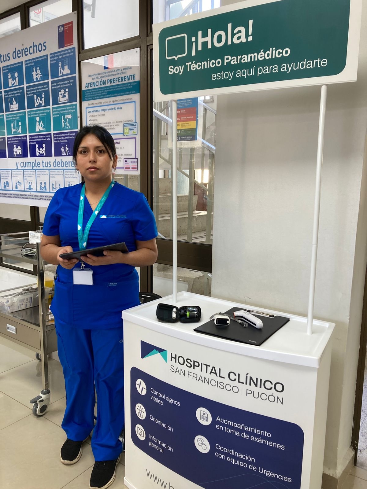 Se trata de la incorporación de un Técnico en Enfermería de Nivel Superior (TENS)dedicado exclusivamente a acompañar a los pacientes en la sala de espera. Este profesional estará disponible para ayudarte, controlar tus signos vitales, entregar orientación, acompañarte en la toma de exámenes y coordinar acciones con el equipo médico de urgencias. Su presencia busca ofrecer contención y tranquilidad a quienes esperan ser atendidos, especialmente en momentos donde la preocupación o el malestar físico pueden generar ansiedad.