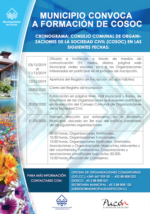 La idea es asegurar participación ciudadana. A comienzos de este 2020, el Municipio de Pucón, en la persona de su alcalde, Carlos Barra, reiteró el llamado...