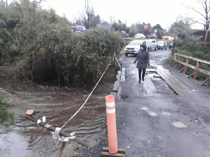 Agua ya está al límite del viaducto que presenta daños graves en su estructura, lo que lo hace extremadamente peligroso. Río El Claro se desbordó en...