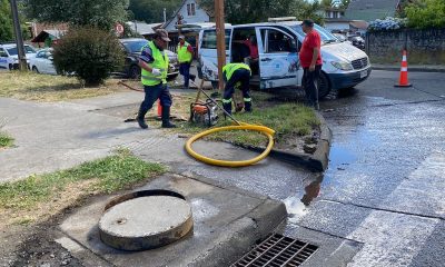 A los pocos minutos de la publicación de la nota de LVP sobre el agua jabonosa que se apozaba en la esquina de Fresia con Uruguay...