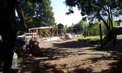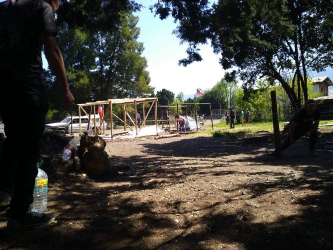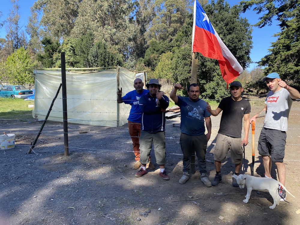 Por ahora sólo se ven algunas construcciones precarias, mucho nylon y algunas planchas de zinc. Eso sí, ya hay un cerco de alambres y varias banderas....