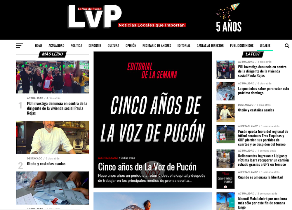 El diario local La Voz de Pucón (LVP) sacó una nueva propuesta de diseño web en su sitio madre (www.lavozdepucon.cl). La idea, según se dijo, es...