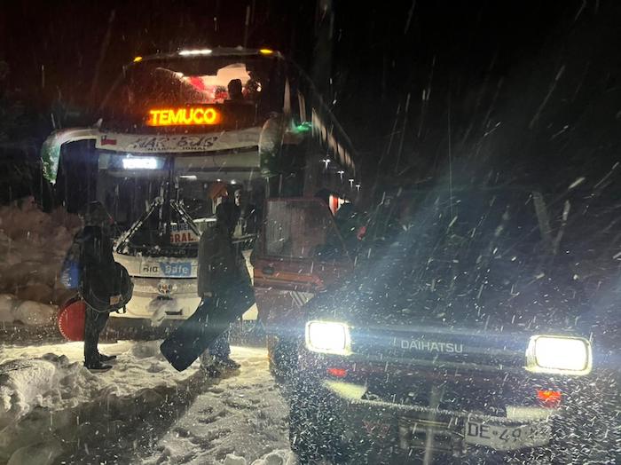 En total cuatro buses quedaron sin movilidad por la nieve y los pasajeros tuvieron que ser rescatados por Bomberos y Carabineros. La buena noticia es que...